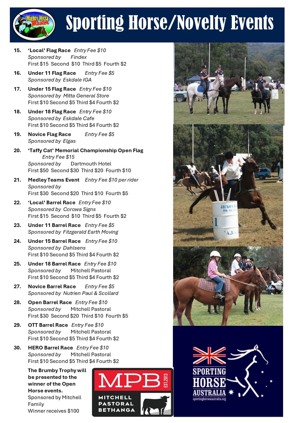 Entries close at midnight the Wednesday before the event. Only local competitors can enter on the day.